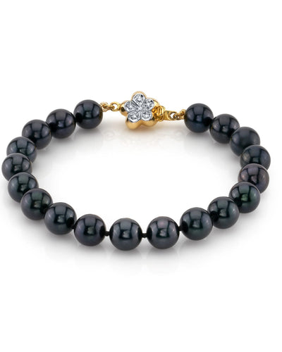 Add some elegance to your everyday outfits with this stunning bracelet featuring Black Japanese Akoya pearls. You'll appreciate the deep, rich hues and the beautiful overtones that range from midnight blue to greenish-black. Composed of AA+ quality, color-treated pearls graduating from 7.5-8.0mm, this piece is designed with a 14K gold clasp. Each bracelet is double-knotted on matching black silk, ensuring durability and sophistication. You'll love how this bracelet can elevate your look for both casual and formal occasions.