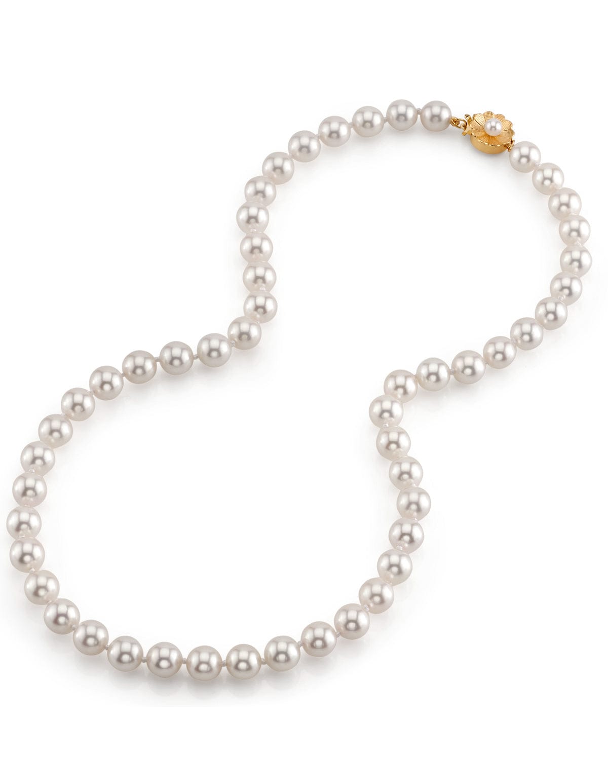 Crafted with care, this stunning necklace showcases exquisite Japanese Akoya pearls, known for their brilliant luster and beautiful overtones. Ranging from 7.5-8.0mm, each pearl reflects a unique elegance, perfect for elevating your style. The thick nacre of these pearls sets them apart, ensuring durability and captivating beauty. Hand-knotted on fine white silk and finished with a 14K gold clasp, this piece seamlessly blends luxury and craftsmanship.