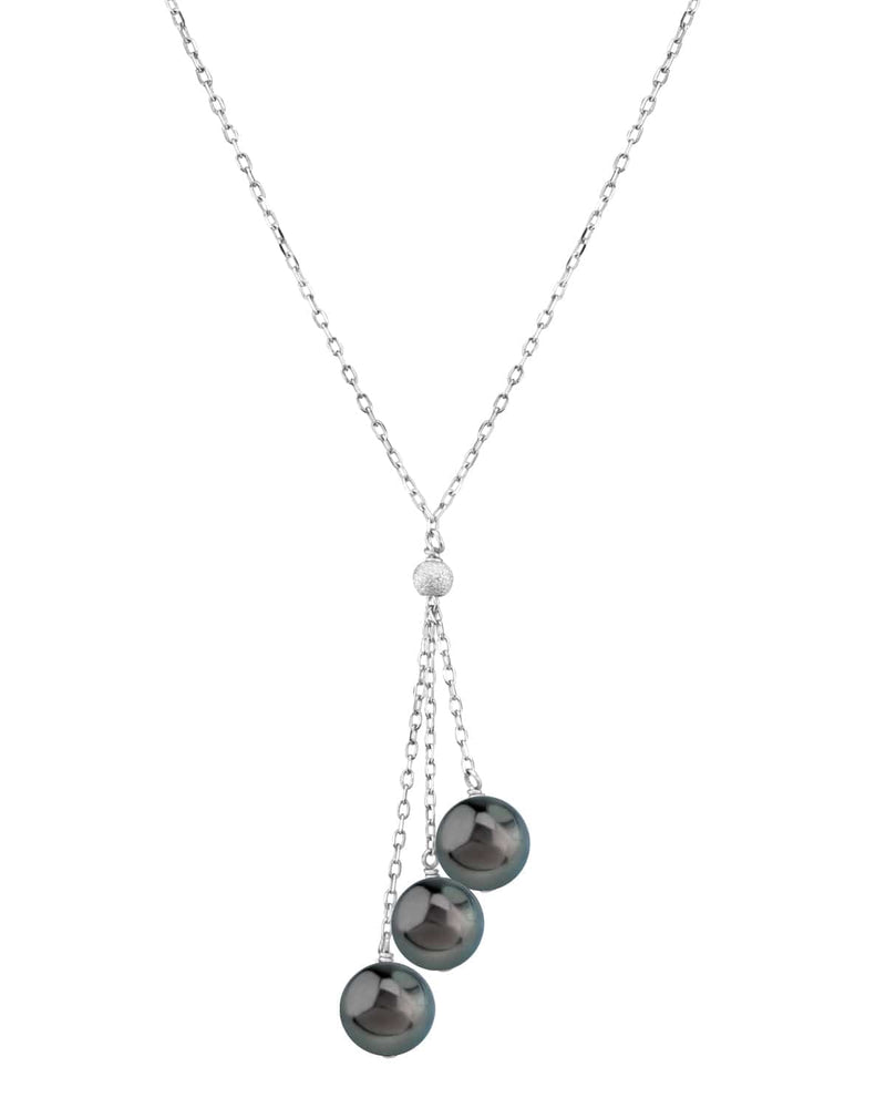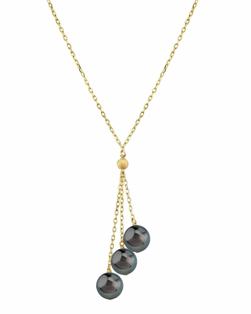 This elegant piece features three exquisite Tahitian pearls, each selected for their stunning luster. Set against a backdrop of 14K gold, the pearls are artfully arranged with a charming gold-filled ball, creating a sophisticated and timeless look. The necklace hangs beautifully from a durable chain and is secured with a reliable spring clasp. This piece arrives in a lovely jewelry gift box, perfect for treating yourself or someone special.