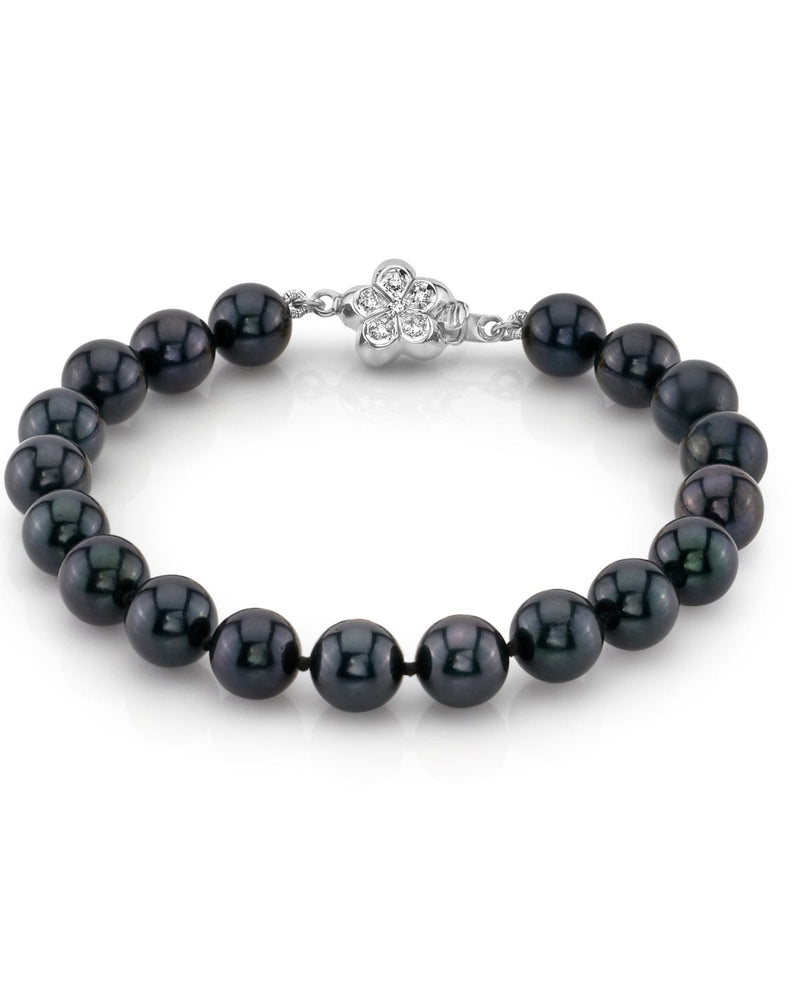 Add some elegance to your everyday outfits with this stunning bracelet featuring Black Japanese Akoya pearls. You'll appreciate the deep, rich hues and the beautiful overtones that range from midnight blue to greenish-black. Composed of AA+ quality, color-treated pearls graduating from 7.5-8.0mm, this piece is designed with a 14K gold clasp. Each bracelet is double-knotted on matching black silk, ensuring durability and sophistication. You'll love how this bracelet can elevate your look for both casual and formal occasions.
