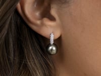 These classic stud earrings showcase two stunning 10mm AAA Black Tahitian pearls, each handpicked for their incredible luster. You'll love how they beautifully complement the finest 14K gold setting. Adorning these pearls are 0.32 carats of dazzling SI clarity diamonds, adding a touch of elegance to your jewelry collection. Perfect for day or night, these earrings are sure to elevate any outfit you choose.