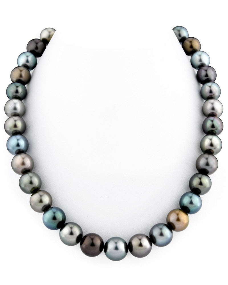 This exquisite necklace showcases a stunning arrangement of 11-12mm Tahitian South Sea pearls, each hand-selected for its unique, rich colors. You'll appreciate the combination of deep blues, soft purples, and warm copper tones that create a captivating multicolor effect. The AAA quality of these pearls guarantees a high luster, ensuring this piece will not just adorn your neck but also become a cherished heirloom.