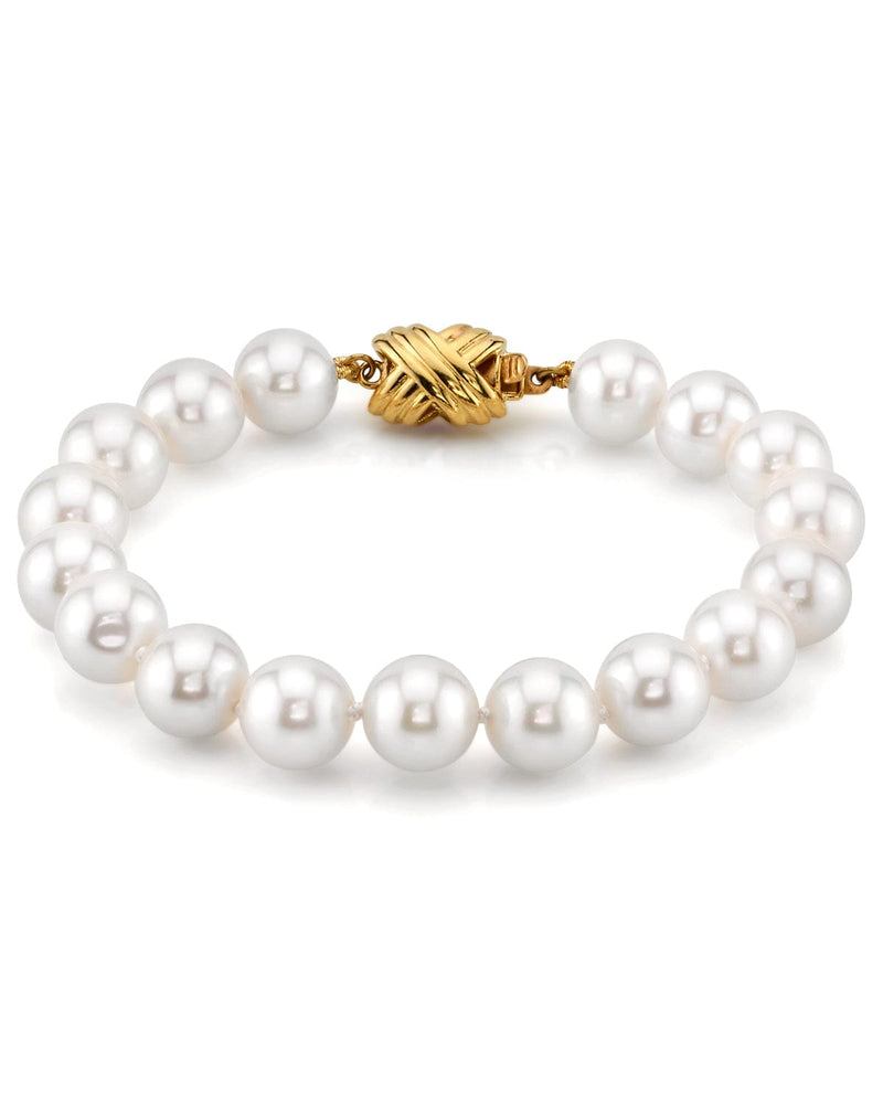 This elegant bracelet showcases 8.5-9.5mm white freshwater pearls, each selected for its stunning luster and refined AAA quality. You'll appreciate the careful craftsmanship, as every pearl is strung and double-knotted with the finest silk thread, ensuring durability and comfort. The bracelet is finished with a clasp of your choice, making it both a versatile accessory and a thoughtful gift, beautifully packaged in a jewelry gift box.