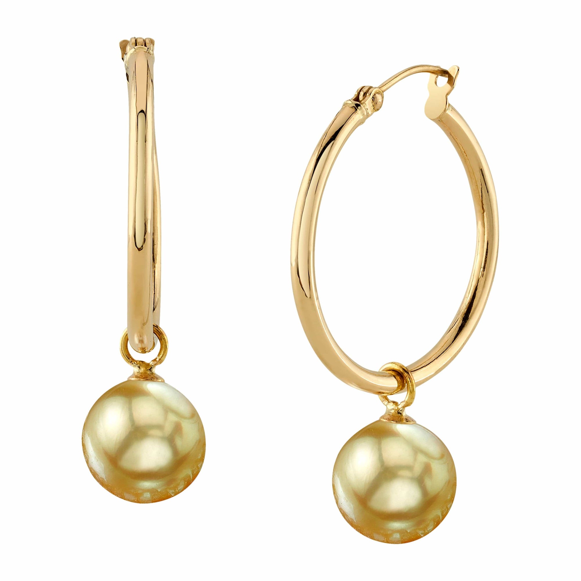 These stunning earrings showcase two handpicked 9mm Golden South Sea pearls, featuring a radiant luster that catches the light beautifully. Mounted on the finest 14K gold, they offer a touch of elegance that complements any outfit you choose. Whether you're dressing up for a night out in the city or enjoying a casual day, these earrings will surely enhance your look.