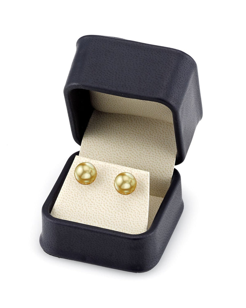 You'll appreciate the captivating glow of these stunning pearl earrings. Crafted from genuine Golden South Sea pearls, they feature remarkable hues and a luminous luster that captures attention. The AAA quality pearls, measuring 9.0-10.0mm, offer a unique combination of natural shades, including beautiful overtones of Neutral Gold, Rose, Silver, and Bronze. Each pearl is skillfully mounted on solid 14K Yellow or White Gold posts, ensuring they are as durable as they are elegant. These earrings come in a Signature Little Black Gift Box, complete with a certificate of authenticity and Pearl Care Instructions, ready to add a touch of luxury to your collection.