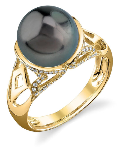 This stunning ring showcases a 10mm Tahitian South Sea pearl, chosen for its exceptional luster and deep, captivating hues. Set on exquisite 14K gold, it features radiant diamonds that add a touch of sparkle to your ensemble. You'll appreciate how this piece can enhance both your evening attire and casual looks, making it a versatile addition to your jewelry collection.