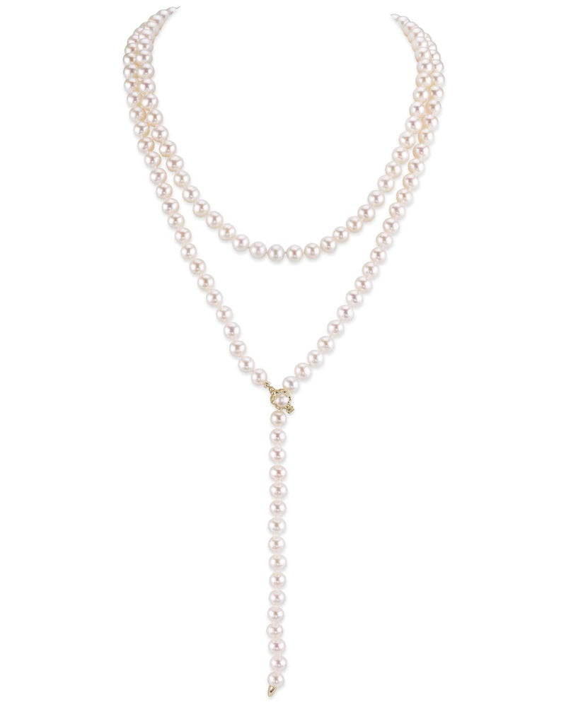 White Freshwater Pearl Adjustable lariat Y-Shape 51 Inch Rope Length Necklace - AAAA Quality